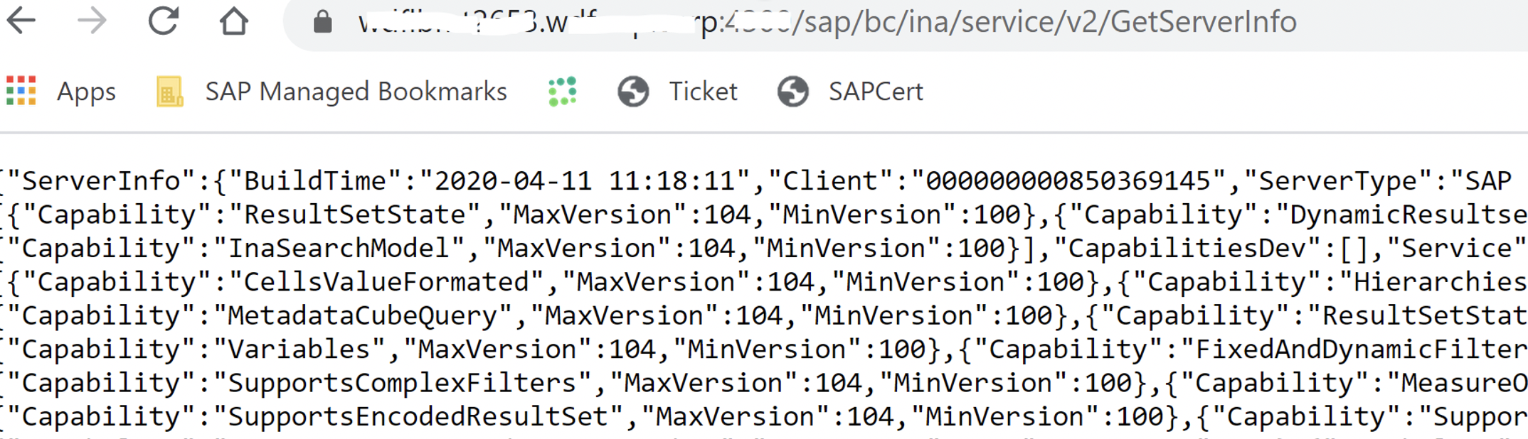 - Ensure that the SAP Information Access (ina) service (/sap/bc/ina/service/v2) on your SAP HANAserver is exposed to browser users directly.
