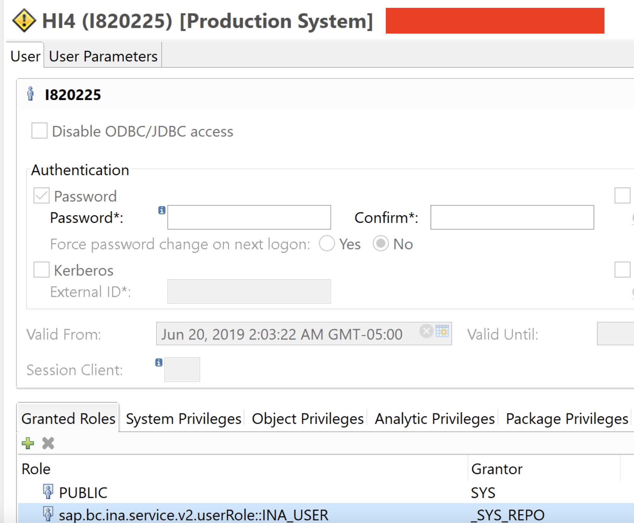 | For SAP HANA version 1.00.112.04 and above, users require both the INA_USER role, and additional object rights. The SAP HANA administrator must grant users SELECT privileges on all view items in the _SYS_BIC schema that users should have access to. |