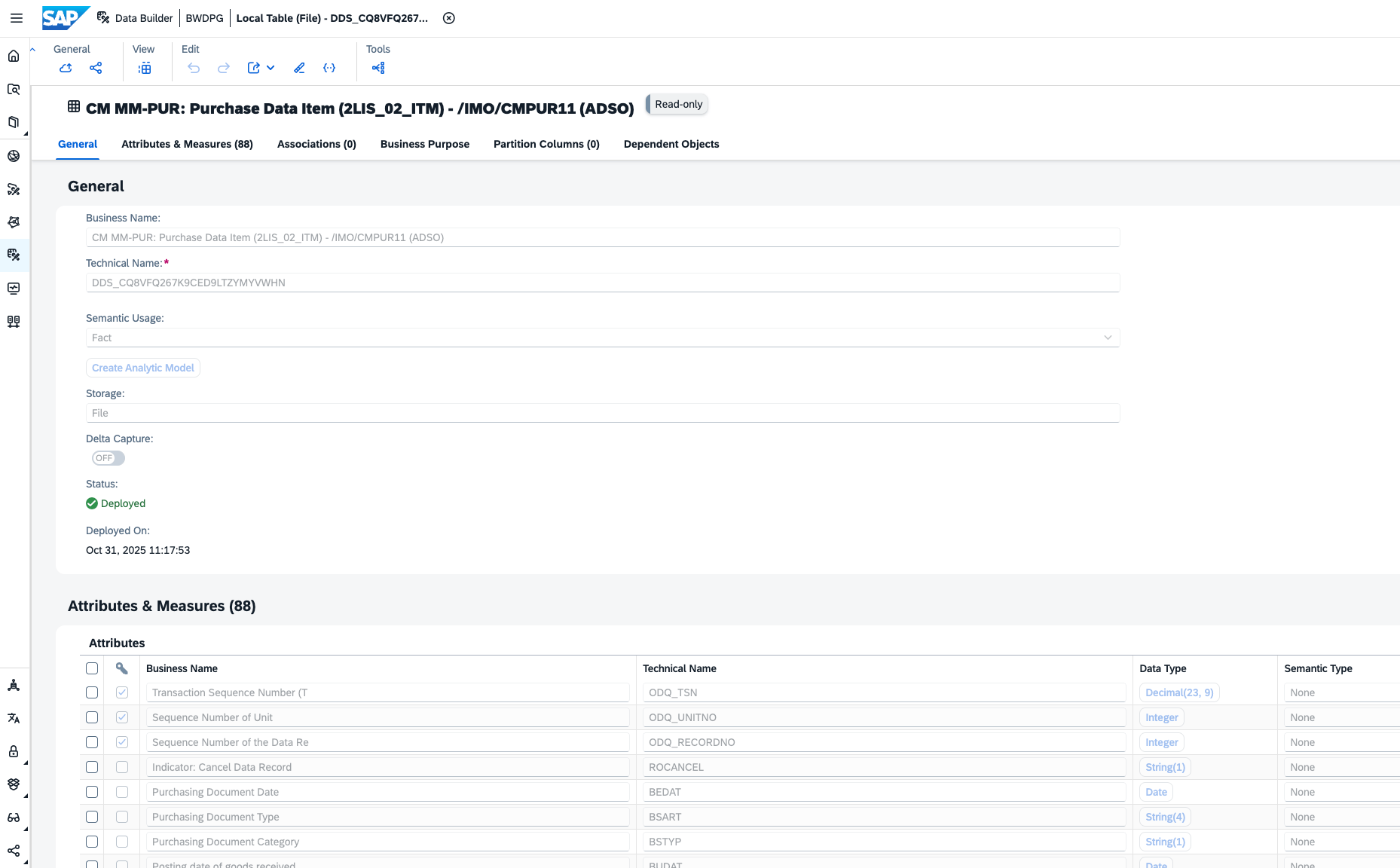 Side Note: I originally deployed the BW DPG using an earlier release, and the target objects where the Semantics Usage Type was : Local Table (Relational Dataset). Now after applying some recent notes it is now : Local Table (Fact)