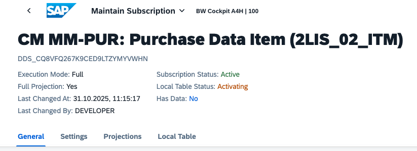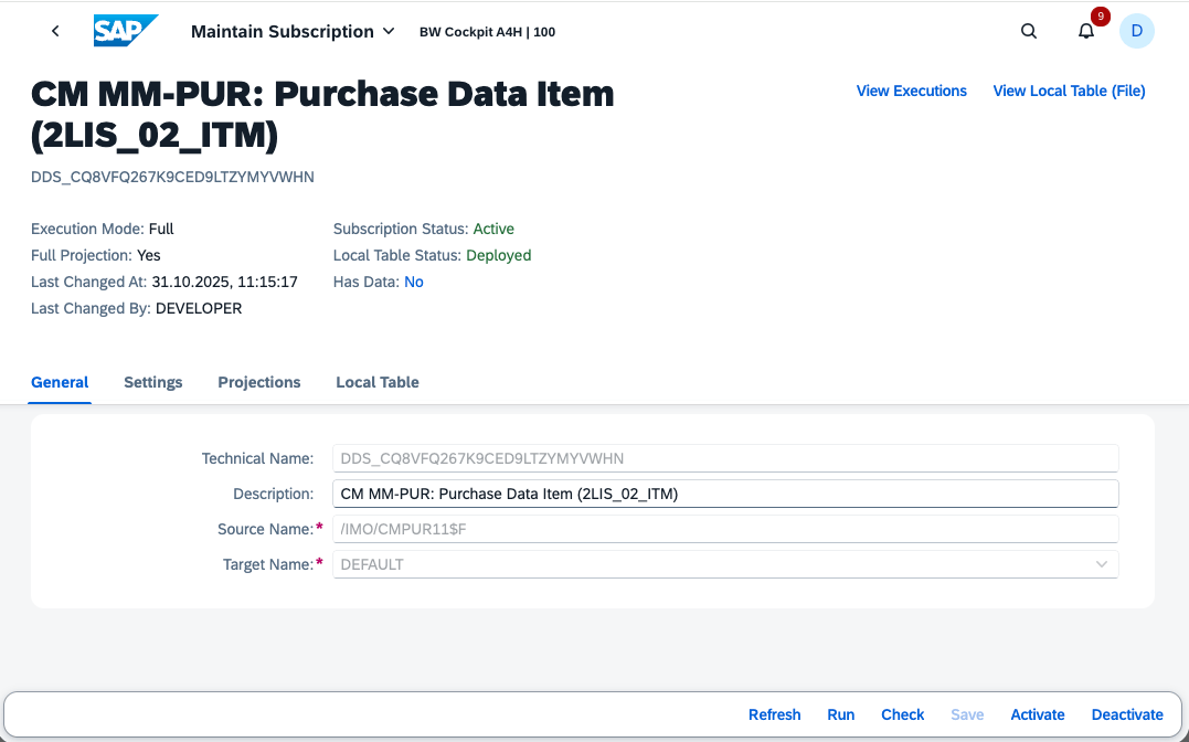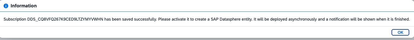 Activating the Subscription will also create the Datasphere Local Table in the BWDPG space (accessible from the link in the BW DPG or via Datasphere: :
