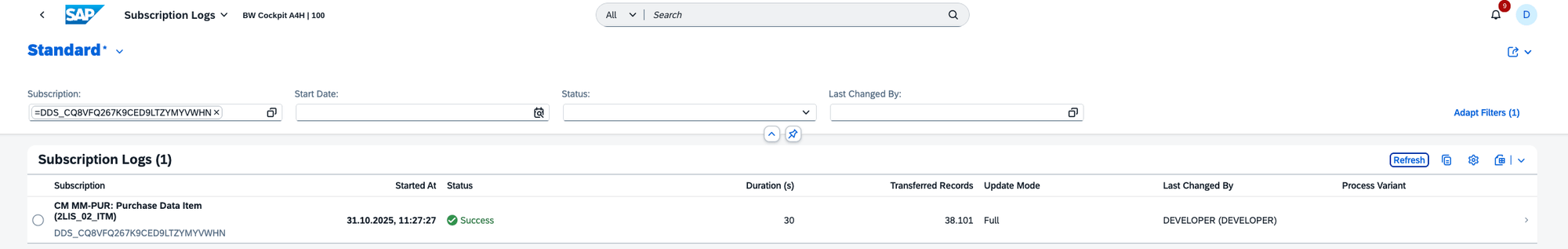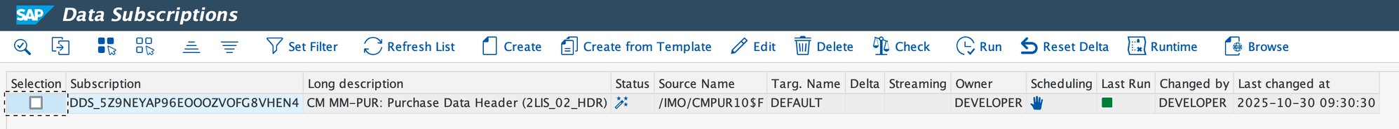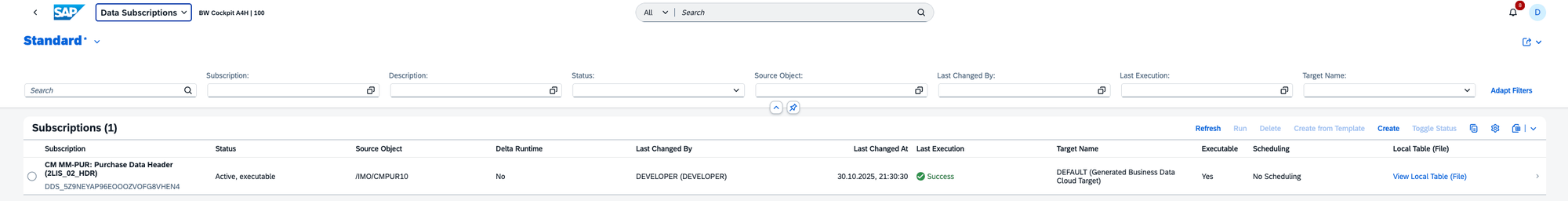 As the Data Subscription is now ready, it can be run directly from the Subscription screen: