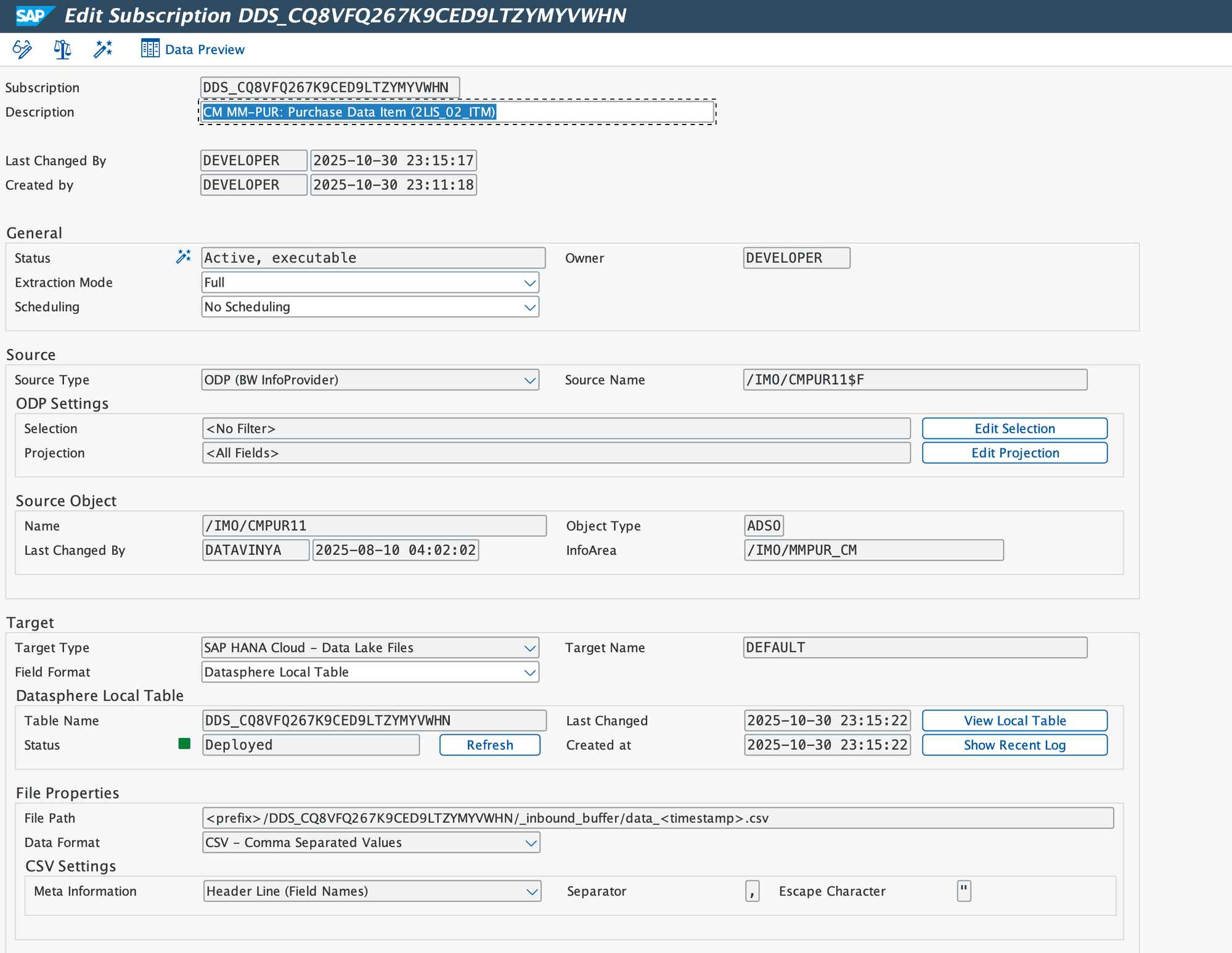 Now the data from BW exists in Datasphere Object store and if selected, can be delta updated as required