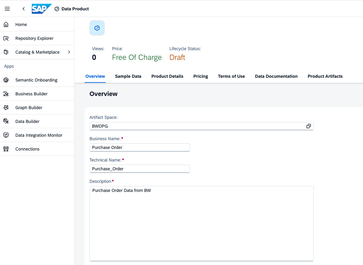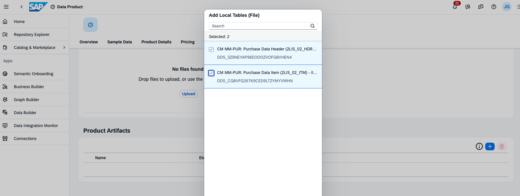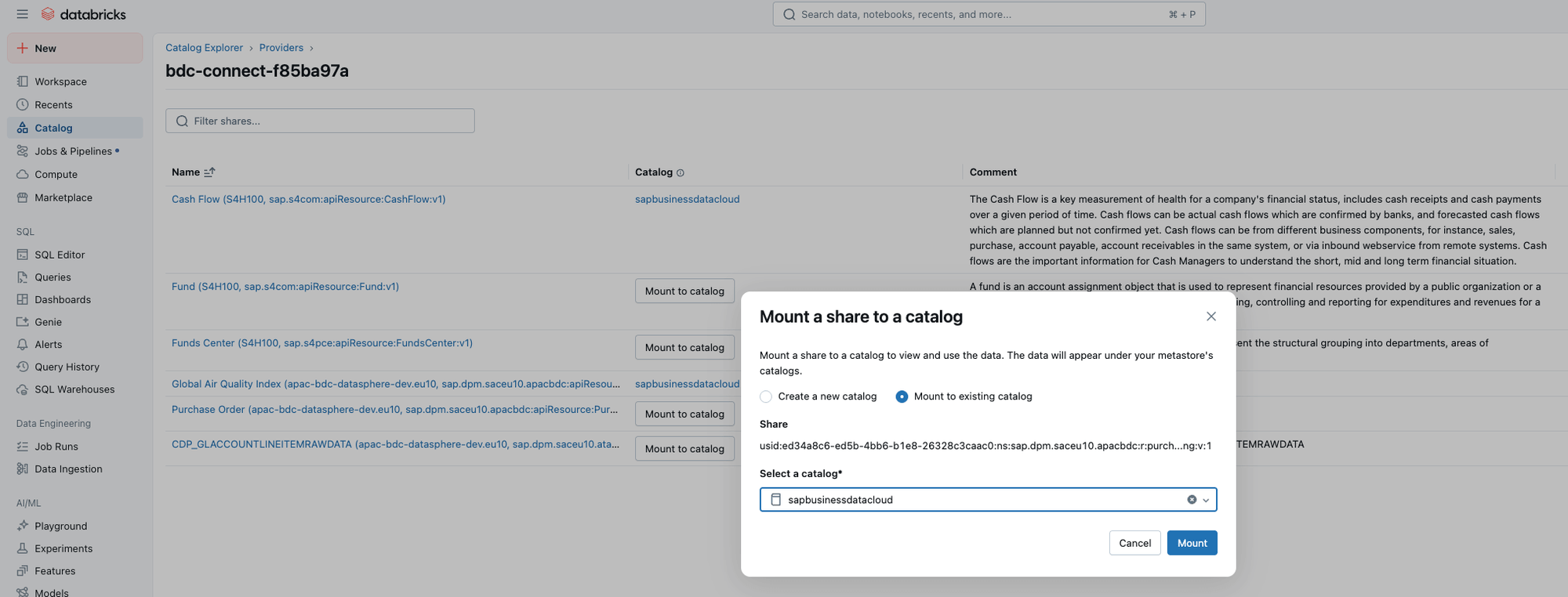 Once mounted, the SAP Data Product can be accessed directly in the Catalog: