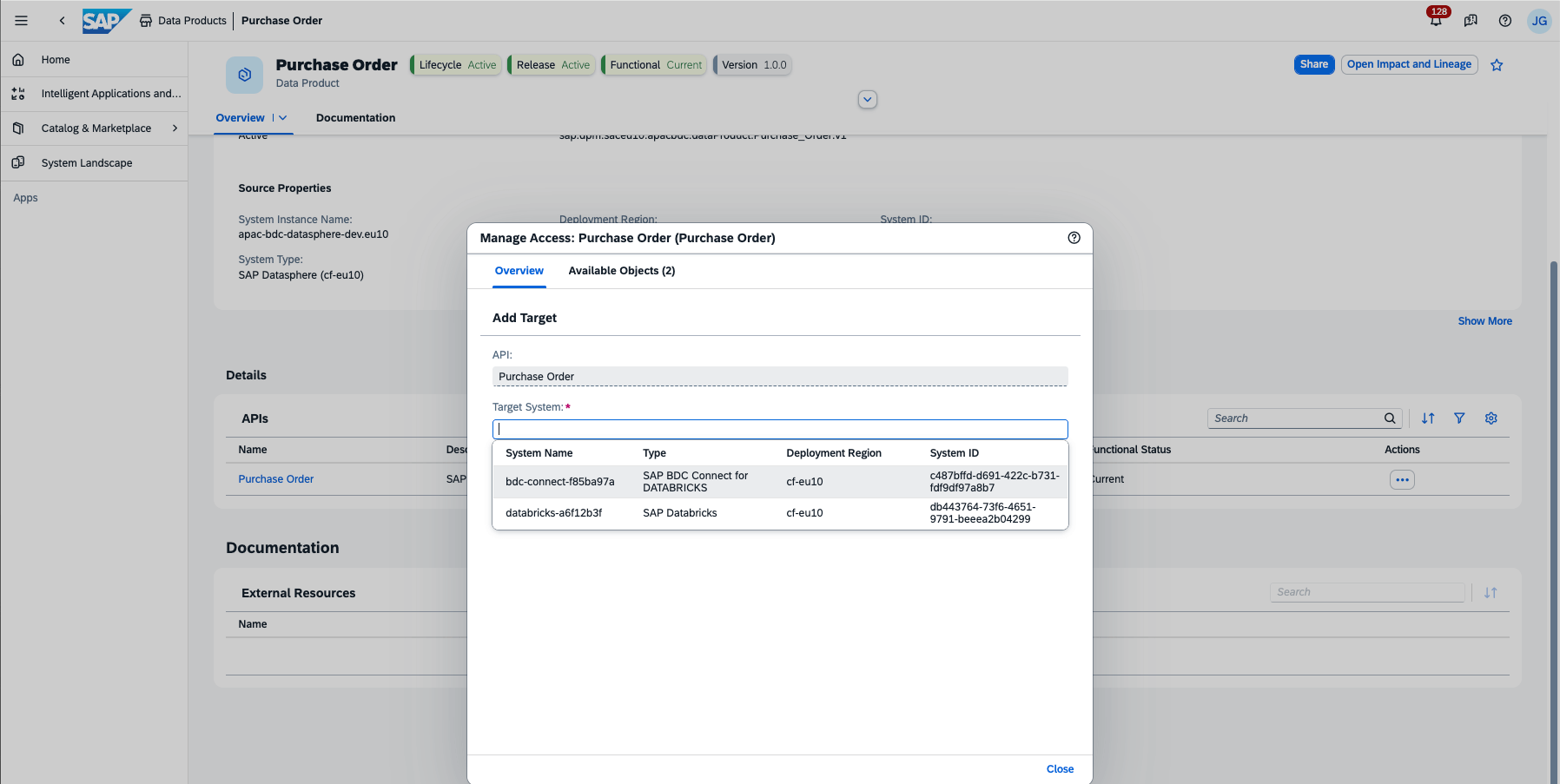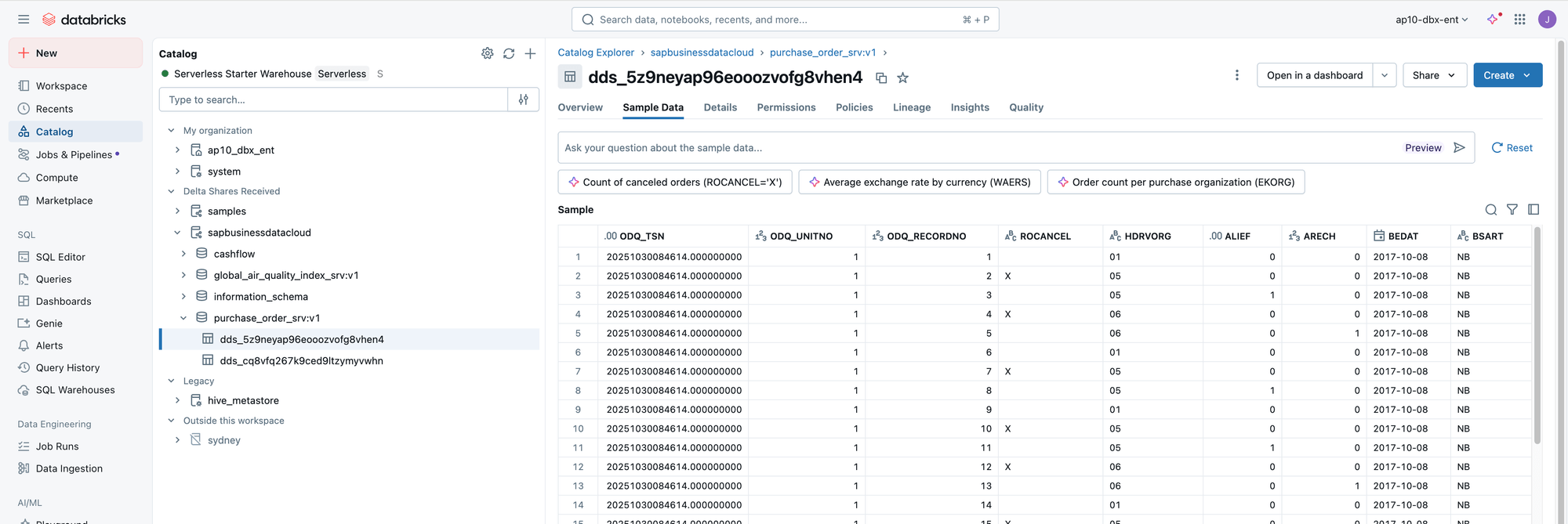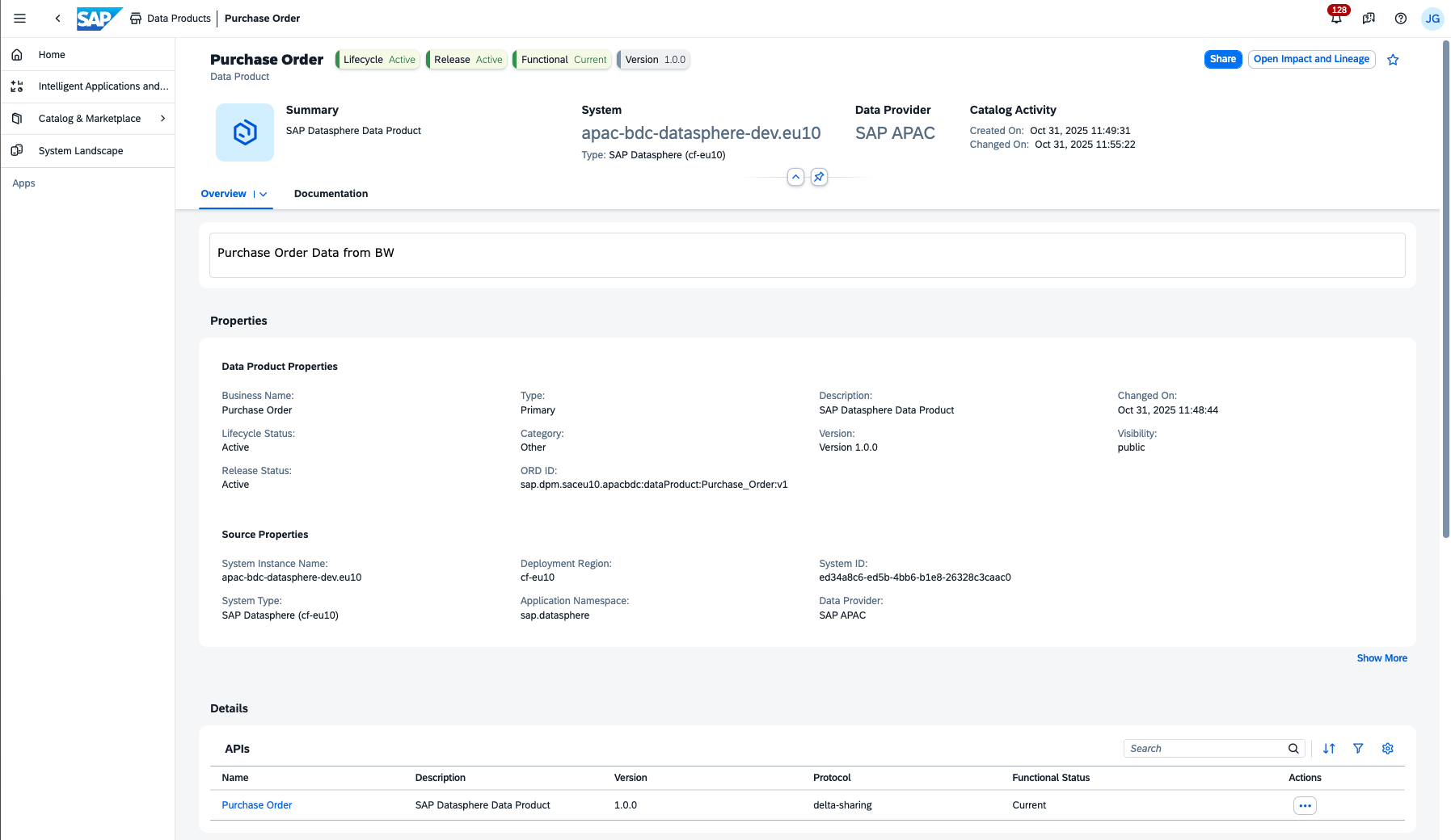Once mounted, the SAP Data Product can be accessed directly in the Catalog: