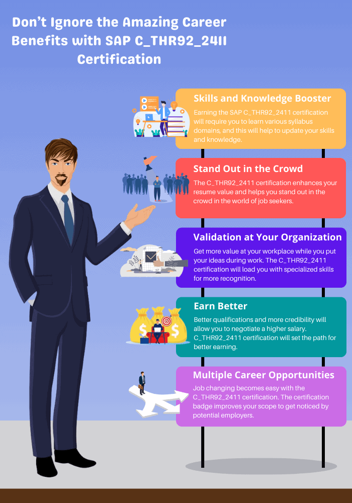 Becoming the C_THR92_2411, SAP Certified Associate – Implementation Consultant – SAP SuccessFactors People Analytics – Reporting is undoubtedly beneficial for a great career. SAP certifications are valued worldwide, and when the certification badge shines on your resume, proving your credibility and staying ahead of your peers is easy. Therefore, grab the valuable materials and make the path to have your successful SAP career.